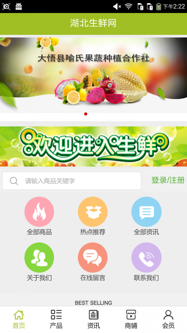 湖北生鲜网,不仅具备购物、查询订单、搜索商品、行业资讯和产品评价等常用功能,而且还实现了手机版特有的会员注册登录、广告位、招商开店等功能。目标是整合当地品牌商、生产商、经销商,为商家和消费者之间提供一站式解决案。