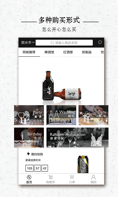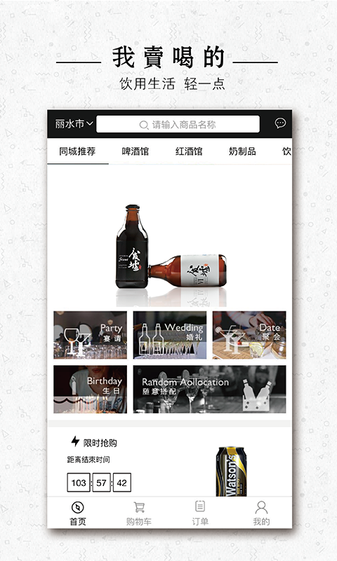 精心甄选优质饮品来源,网罗国内外各种饮品,除基础的同城配送服务以及人性化的购买形式外,我们更希望您在体验“新模式饮用生活”的过程中,享受到更贴心的婚礼、聚会、宴请等主题酒水定制服务,提高您饮用品质的同时更为您打造便捷、高质的饮用生活,切实做到“饮用生活轻一点”的产品理念!