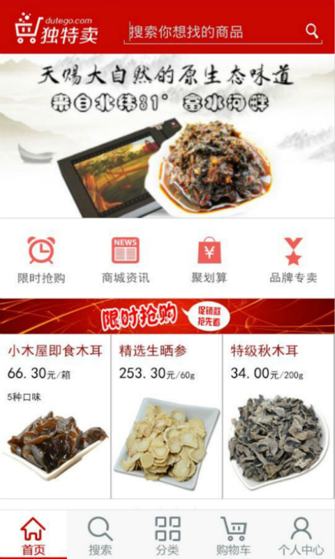 独特卖app是一款手机购物应用,独特卖app为用户提供海量的特色商品,包含全国各地的土特产品,让用户在这里轻松选购,享受便捷的网购服务。