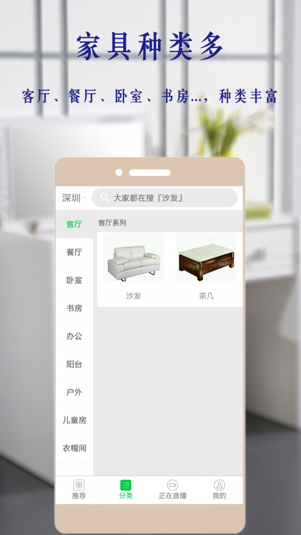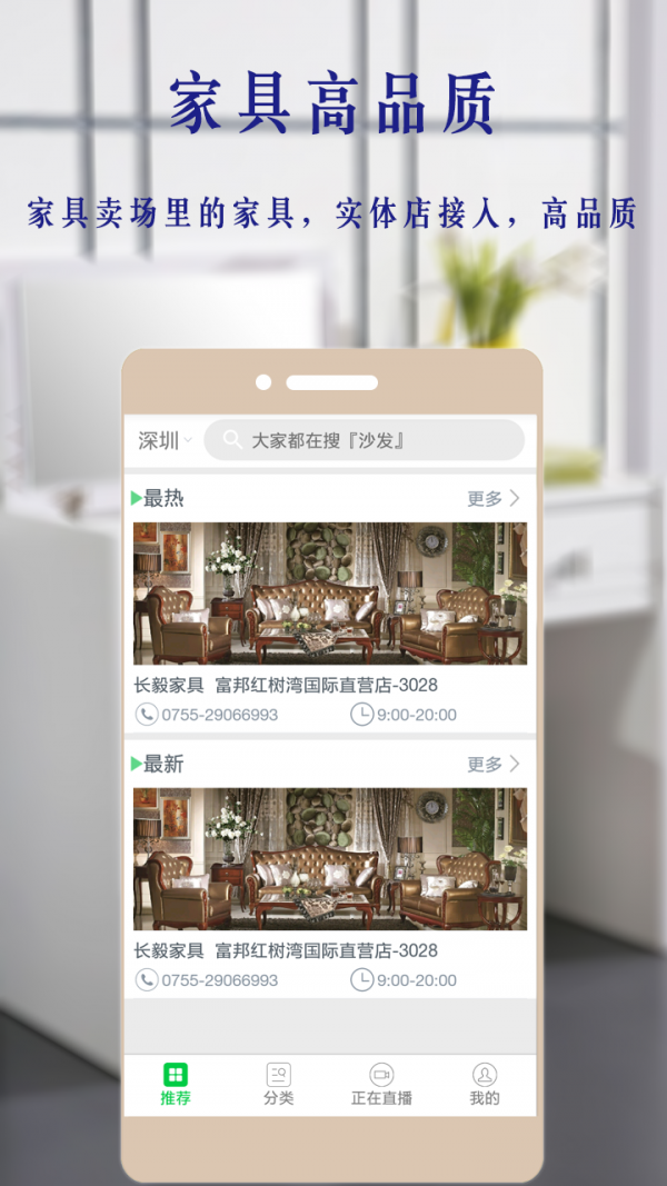 1、实时音视频直播,随时随地真实选购家具卖场里的家具。