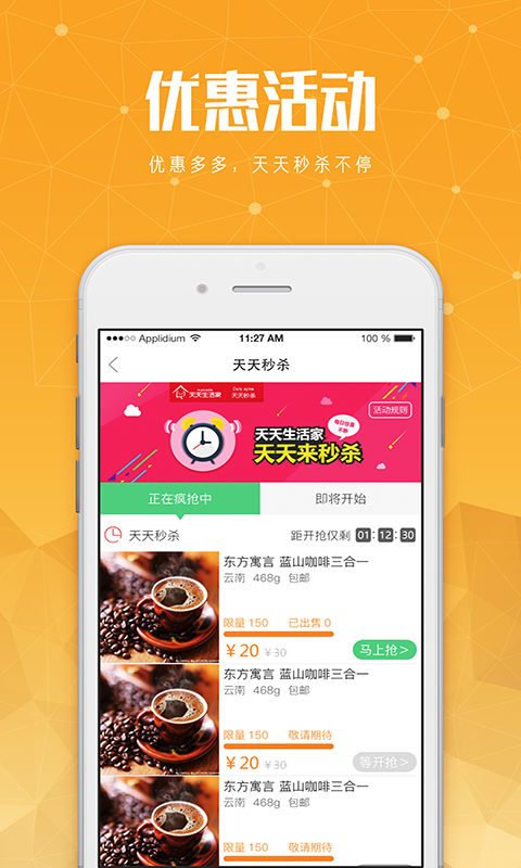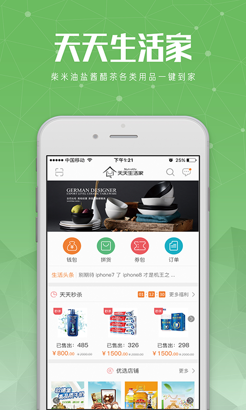 天天生活家app是一款手机购物软件,您的掌上生活超市,足不出户就可以把柴米油盐酱醋茶各类用品轻松带回家。