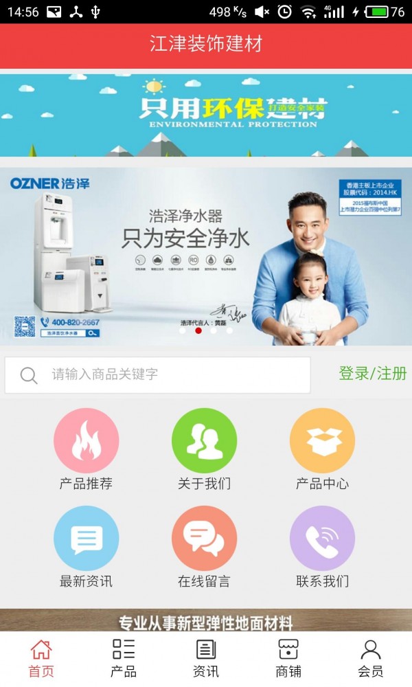 江津装饰建材app不仅具备购物、查询订单、搜索商品、行业资讯和产品评价等常用功能,而且还实现了手机版特有的会员注册陆、广告位、招商开店等功能。目标是整合当地品牌商、生产商、经销商,为商家和消费者之间提供一站式解决方案。