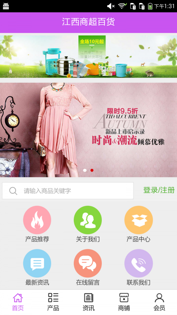 江西商超百货app不仅具备购物、查询订单、搜索商品、行业资讯和产品评价等常用功能,而且还实现了手机版特有的会员注册登录、广告位、招商开店等功能。目标是整合当地品牌商、生产商、经销商,为商家和消费者之间提供一站式解决案。