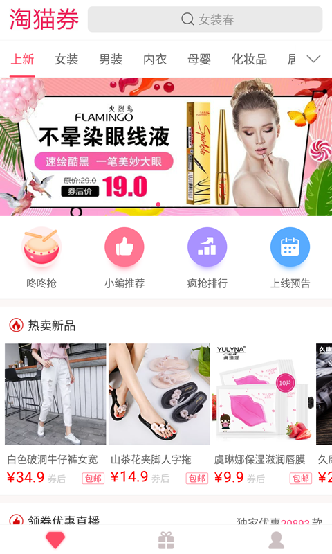 淘猫券是一款汇集海量淘宝天猫内部隐藏优惠券的导购APP,每天直播更新数千款商品,由合作商家提供独有内部优惠券。先领券,再下单!享受别人享不到的优惠。内部优惠券仅限淘猫券领取,直接去淘宝是找不到也无法领取的。