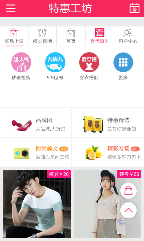特惠工坊app是一款网络购物应用,每日实时直播最新商品优惠券信息,提供优惠券查询功能,消费者可以快速查找并领取自己需要的优惠券,享受超值购物体验。