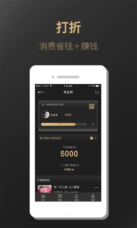 Vip消费商在享有普通消费商权益的同时,自身消费收益成倍提高,享受联盟人脉消费返利,可以在平台经营店铺,并拥有共生网积分卡经营权。