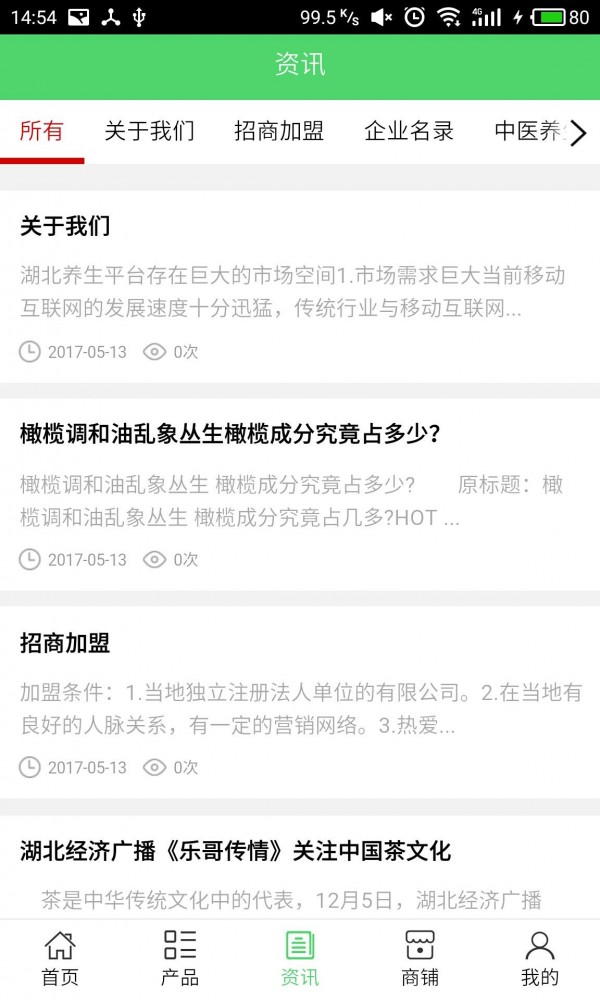 湖北养生平台是一款专业的APP客户端,随时为你提供新闻资讯、养生百科、食疗养生、中医养生、企业推荐、招商加盟等服务,该客户端现面向全国招商,各大企业可以在该客户端上发布供求信息,发布广告,发布行情,让各大企业及广大客户更为便捷。目标是整合当地品牌商、生产商、经销商,为商家和消费者之间提供一站式解决案。