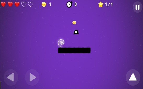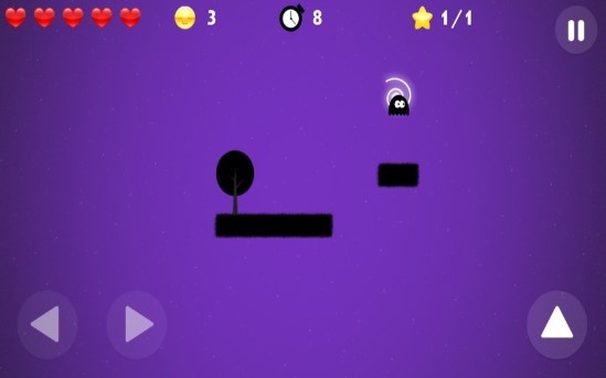 主要有三个虚拟按钮,来控制小怪物的左右行动以及跳跃行动;