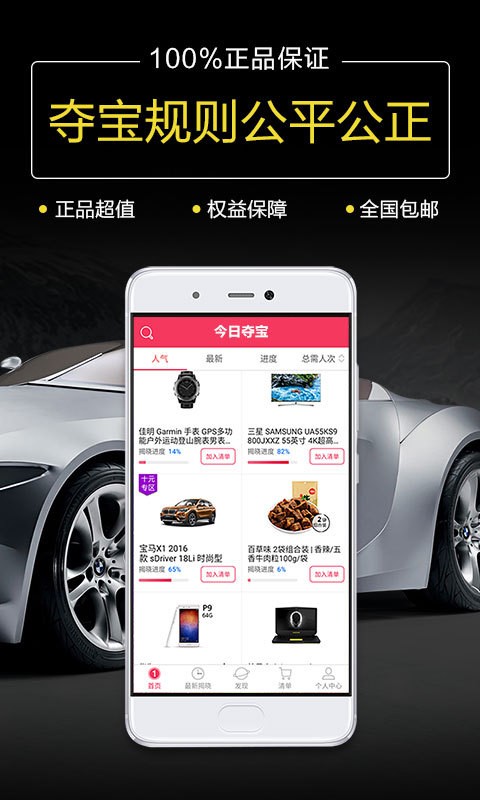 今日夺宝app是一款全新的电商购物软件,采用当下非常流行的1元购物模式,让用户只需1元就可以有机会把心仪的商品带回家,轻松收获夺宝的喜悦!