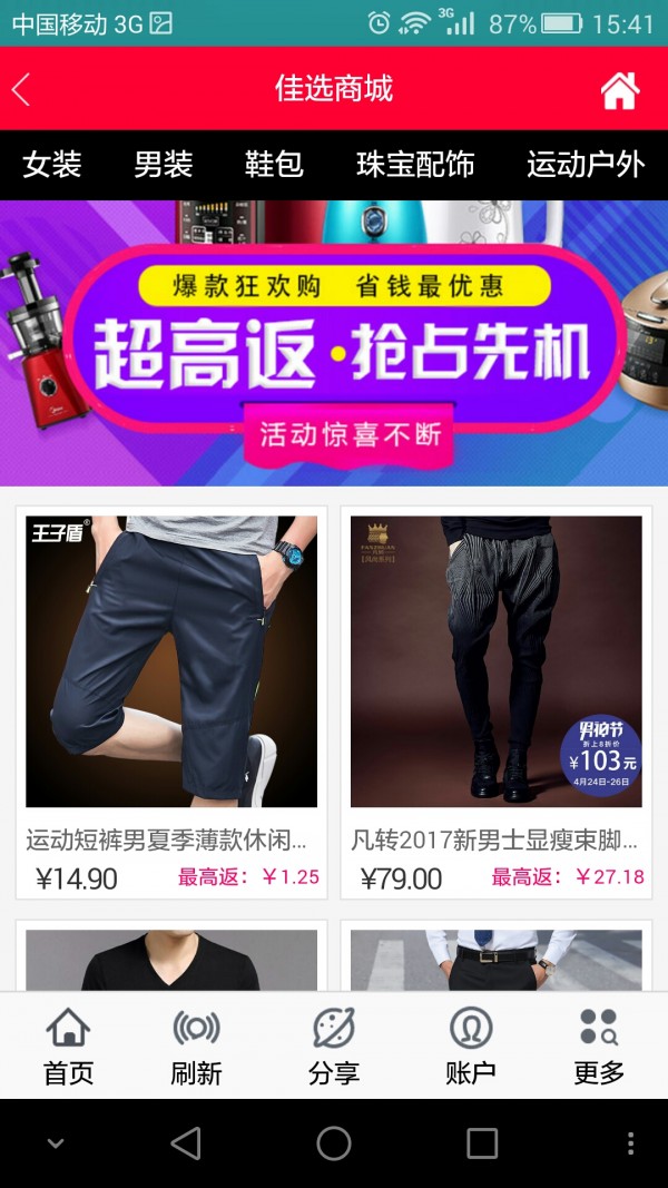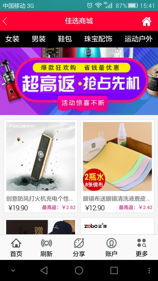 佳选商城精选全网最优惠的宝贝,返利高达80%,佳选商城常去的商城一触即达,搜索宝贝更便捷,查看返利更简单!佳选商城支持500多家商城购物返利,随时随地拿返利!居家返利手机版,最省钱的手机网购神器!!!