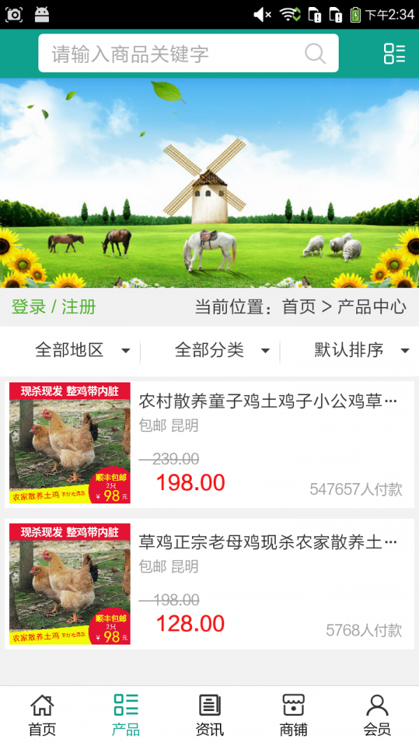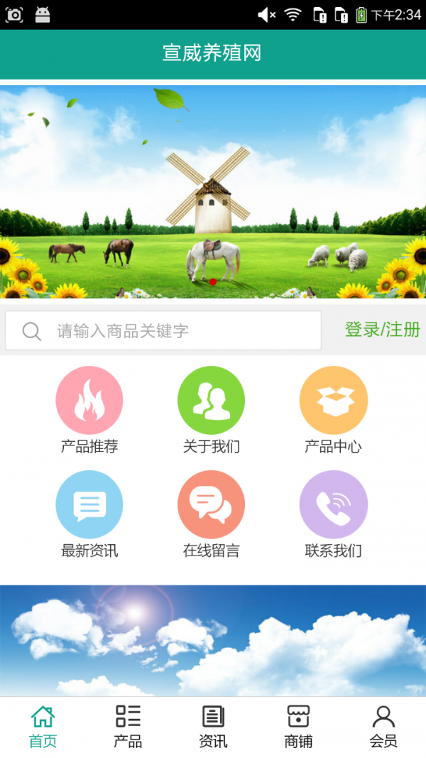 宣威养殖网app不仅具备购物、查询订单、搜索商品、行业资讯和 产品评价等常用功能,而且还实现了手机版特有的会员注册 登录、广告位、招商开店等功能。目标是整合宣威当地品牌商、 生产商、经销商,为商家和消费者之间提供一站式解决案。