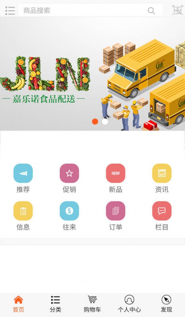 嘉乐诺食品配送app是一款移动生鲜蔬菜订货软件,嘉乐诺食品配送app精选优质食品类商品,你可以随时在线下单订购,快速为你配送到家,让订货变得更便捷。