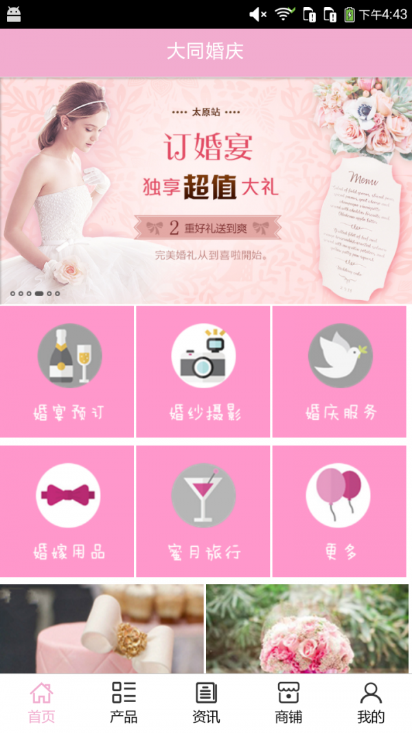 大同婚庆app是一款婚庆用品购物平台,大同婚庆app为用户提供一站式购物服务,轻松把自己需要的婚庆用品买回家。