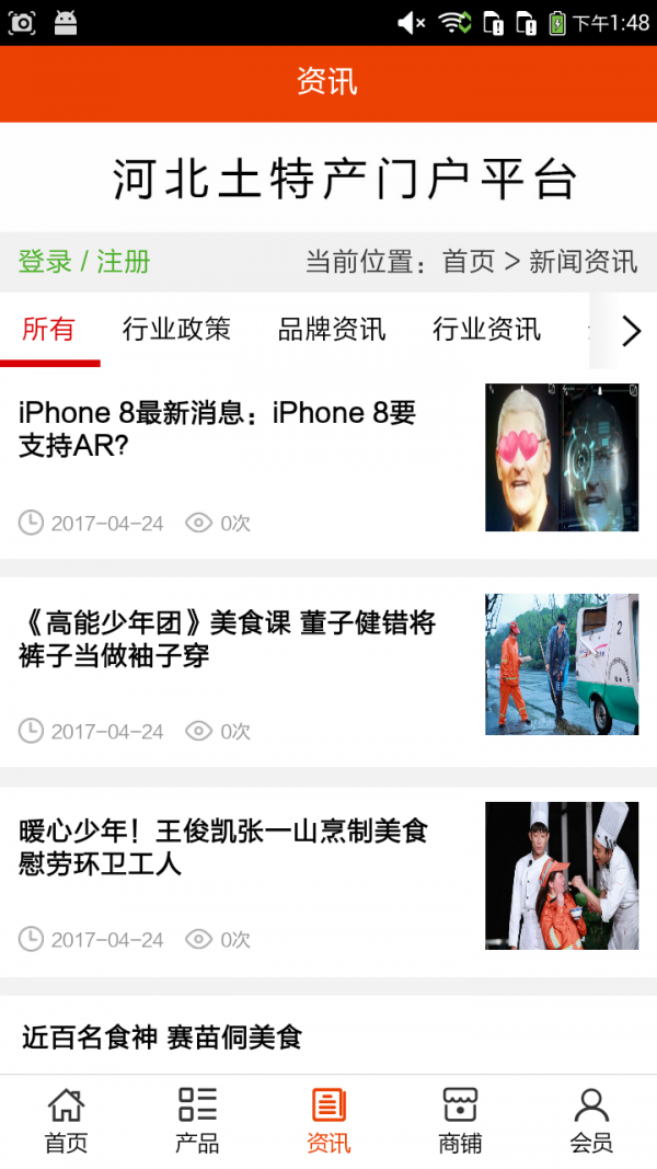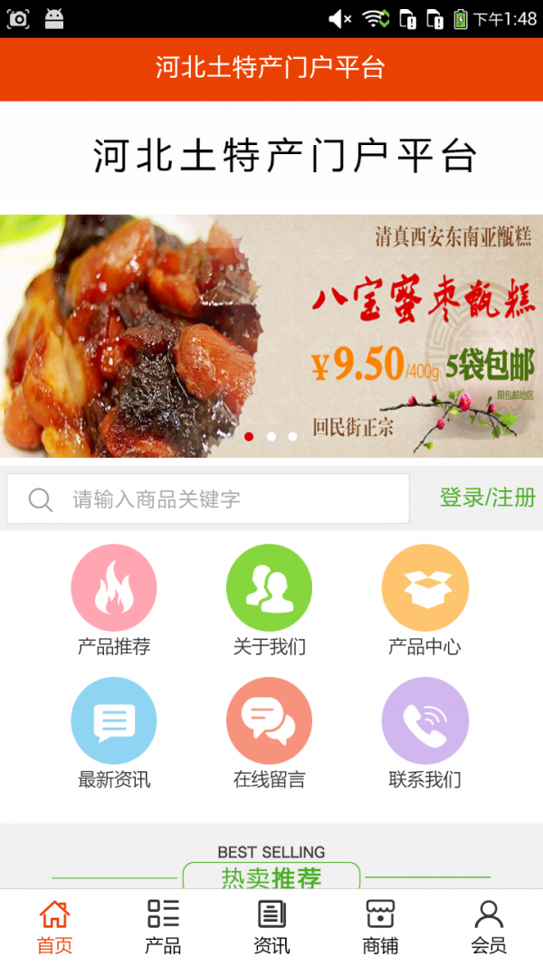 河北土特产门户平台app不仅具备购物、查询订单、搜索商品、行业资讯和产品评价等常用功能,而且还实现了手机版特有的会员注册登录、广告位、招商开店等功能。目标是整合当地品牌商、生产商、经销商,为商家和消费者之间提供一站式解决案。