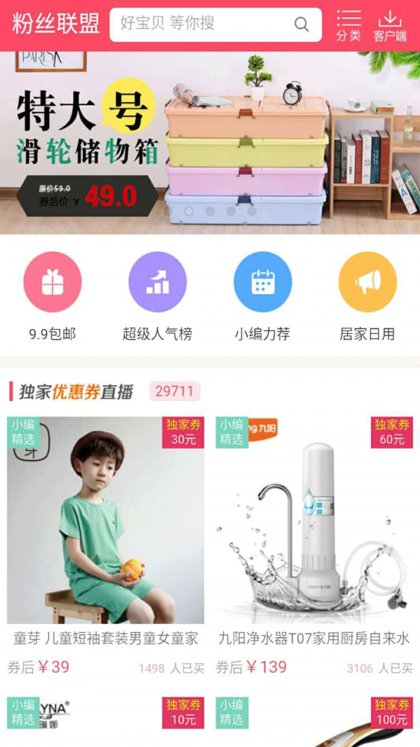 3、不间断更新淘宝内部机密优惠券,所有成交均由淘宝或天猫完成,折扣力度非常大,任性领券,再去购物! 以专业买手的推荐模式,每日挑选海量超值商家内部优惠信息给用户,低价抢购。