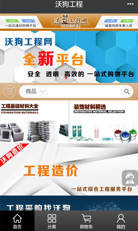 沃狗工程app是一款综合工程服务平台,沃狗工程app为广大消费者提供了安全、高效的购物服务,让消费者可以快速采购工程材料,获取更多工程相关信息。
