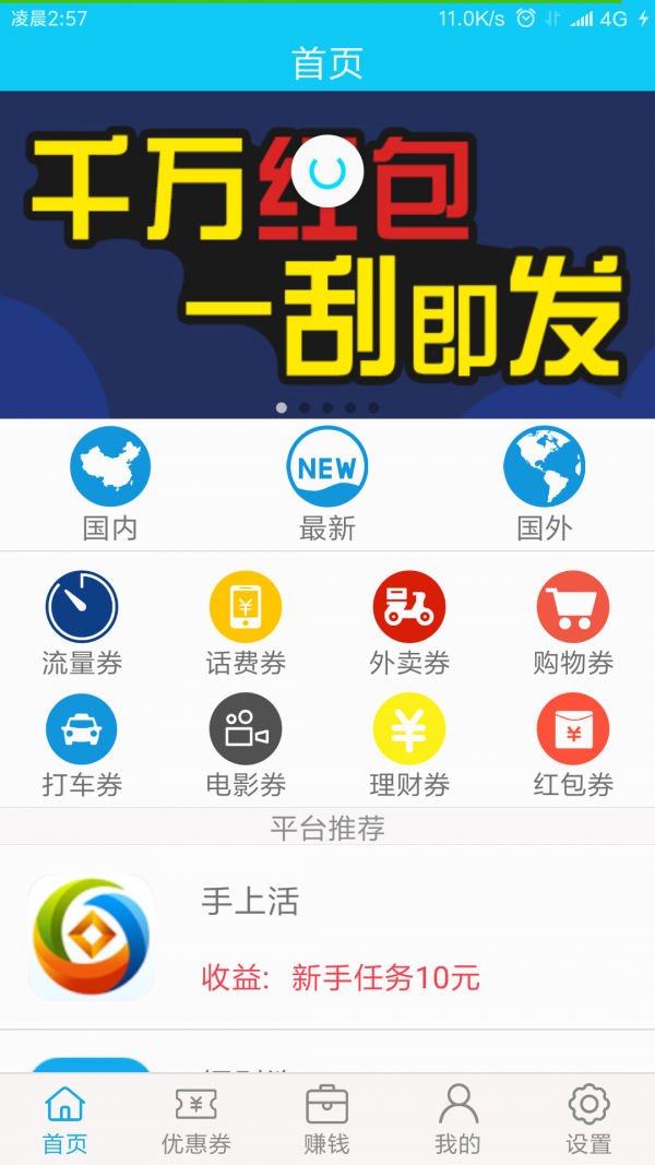 铜钱赚app是一款展示各种赚钱活动和优惠券的APP,话费券,流量券,理财券,外卖券,购物券,电影券,各种优惠活动,奖励多多,快来领取优惠吧!铜钱赚致力于帮助用户快速的找到优惠活动和领取优惠券,减少寻找好的活动的时间!