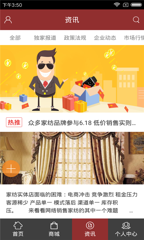 家纺平台app是一款网络购物应用,是个专注于销售家纺产品的移动商城。另外在家纺平台app中你还能查阅产品评论,掌握行业资讯等。