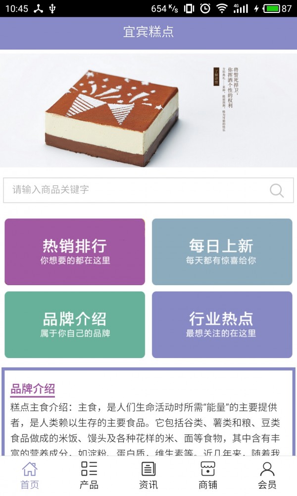 宜宾糕点app不仅具备购物、查询订单、搜索商品、行业资讯和产品评价等常用功能,而且还实现了手机版特有的会员注册陆、广告位、招商开店等功能。目标是整合当地品牌商、生产商、经销商,为商家和消费者之间提供一站式解决方案。