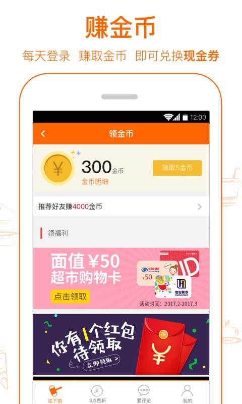 赚金币:每天登录,赚取金币,即可兑换现金券