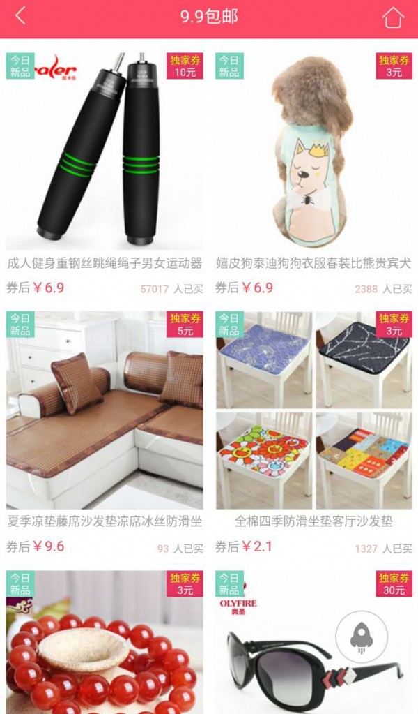 3、9.9元包邮:每日精选超值商品,全场9.9元全国包邮。物美价廉!