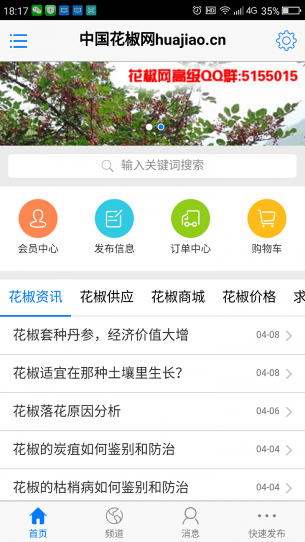 首页下部增加快速发布信息按纽,方便椒农发布信息。操作更人性化,简单化。