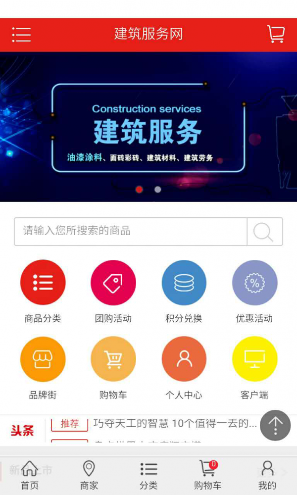 建筑服务网是一款实用信息平台,集商城、品牌街、积分兑换、优惠活动团购活动和热卖等功能于一体,真实、高效地让您生活更简单!
