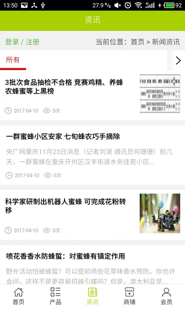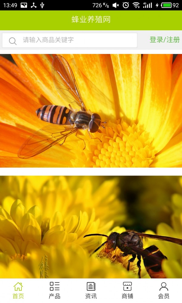 蜂业养殖网app不仅具备购物、查询订单、搜索商品、行业资讯和产品评价等常用功能,而且还实现了手机版特有的会员注册陆、广告位、招商开店等功能。目标是整合当地品牌商、生产商、经销商,为商家和消费者之间提供一站式解决方案。