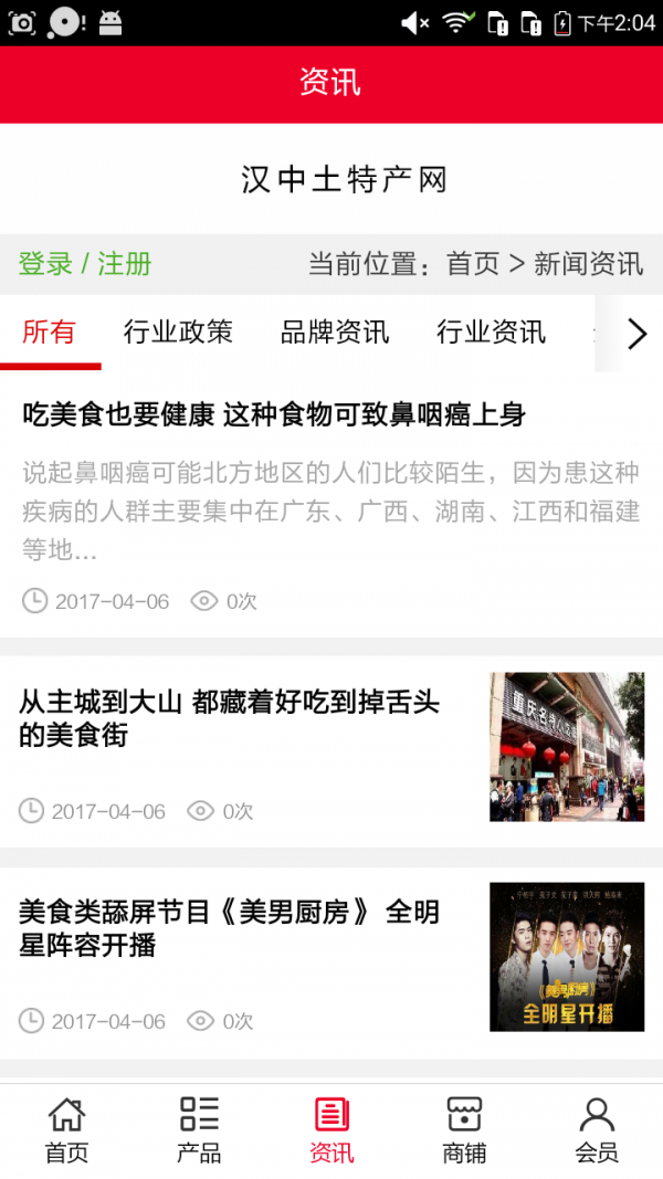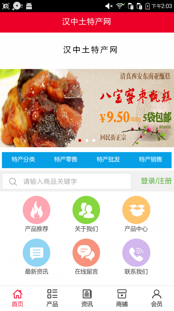 汉中土特产网app不仅具备购物、查询订单、搜索商品、行业资讯和产品评价等常用功能,而且还实现了手机版特有的会员注册登录、广告位、招商开店等功能。目标是整合当地品牌商、生产商、经销商,为商家和消费者之间提供一站式解决案。欢迎下载使用!