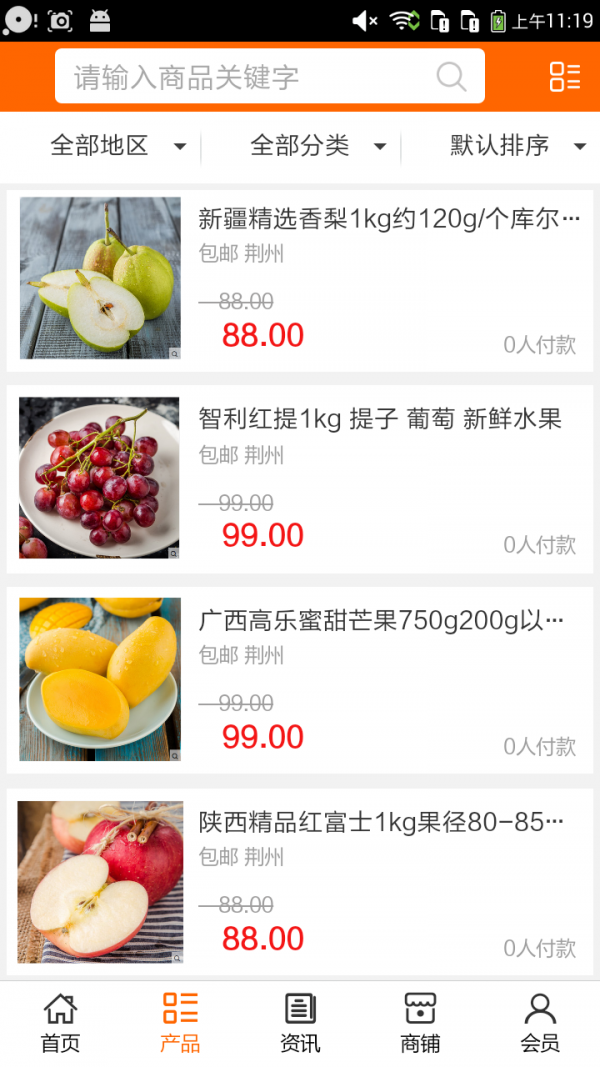 荆州水果app不仅具备购物、查询订单、搜索商品、行业资讯和产品评价等常用功能,而且还实现了手机版特有的会员注册登录、广告位、招商开店等功能。目标是整合当地品牌商、生产商、经销商,为商家和消费者之间提供一站式解决案。