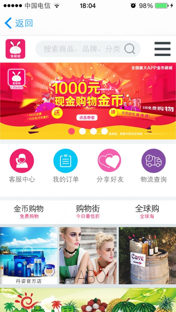 兔哒哒app商城是一款将购物和打电话功能结合在一起的软件,通过兔哒哒app商城你可以便捷的购买到自己需要的产品,同时还可以免费打电话。
