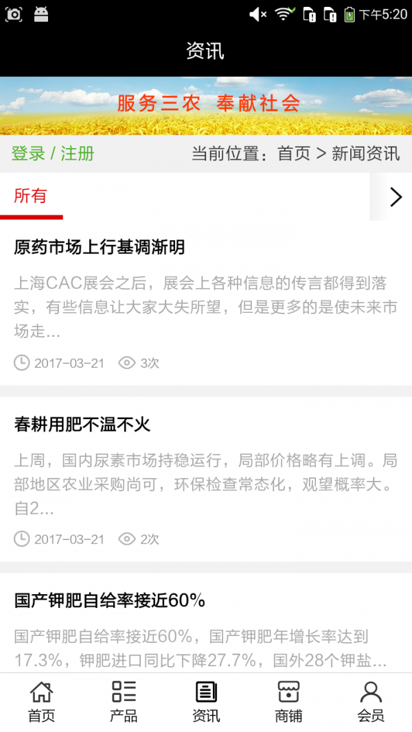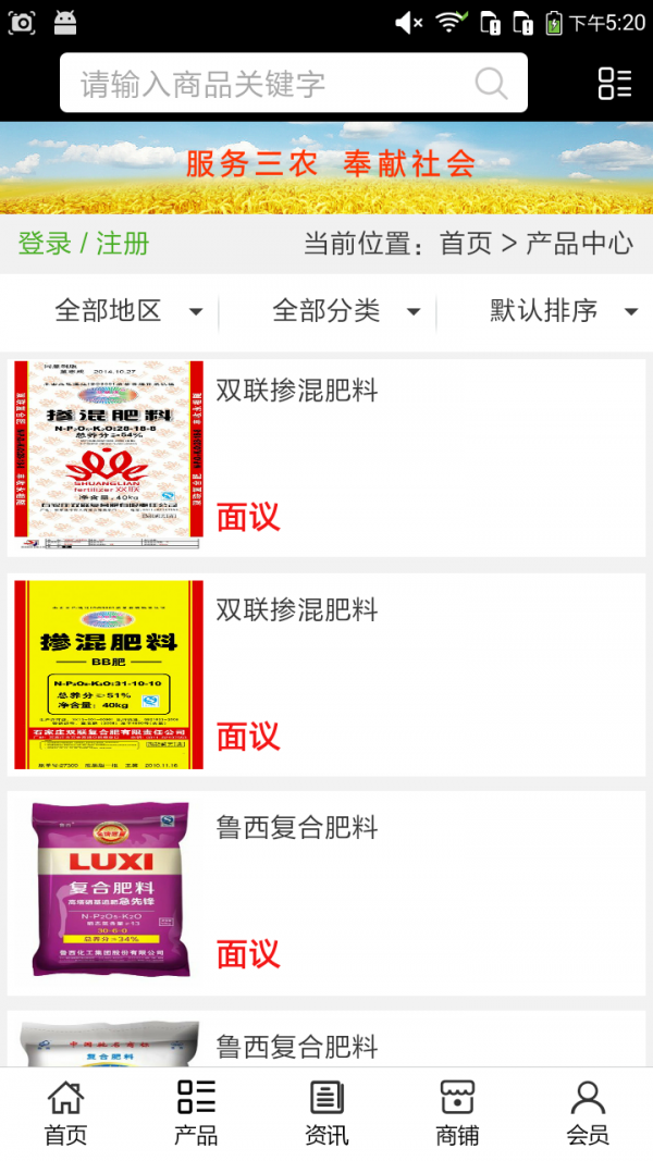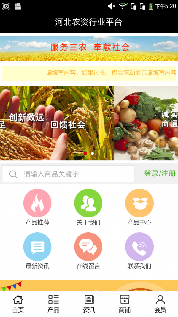 河北农资行业平台App不仅具备购物、查询订单、搜索商品、行业资讯和产品评价等常用功能,而且还实现了手机版特有的会员注册登录、广告位、招商开店等功能。目标是整合当地品牌商、生产商、经销商,为商家和消费者之间提供一站式解决案。