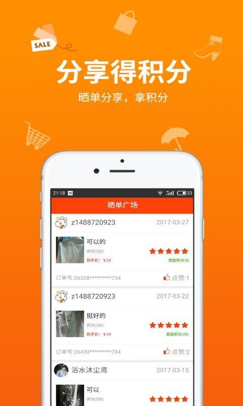 多级分享 - 多级返积分:分享给亲朋好友,亲朋好友注册后,购买任何宝贝,分享人也可获得积分哦。