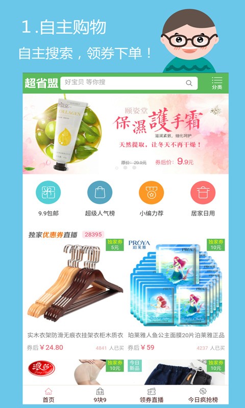 超省盟是一个提供大量手淘商品优惠券的应用圈子,已经覆盖全网商品总数的90%!在这里,让您比别人少花钱,让您在淘宝天猫上购物更加实惠!每天更新上万款商品优惠信息,不让您错过任何一个秒杀的机会!是网购达人公认的省钱app。