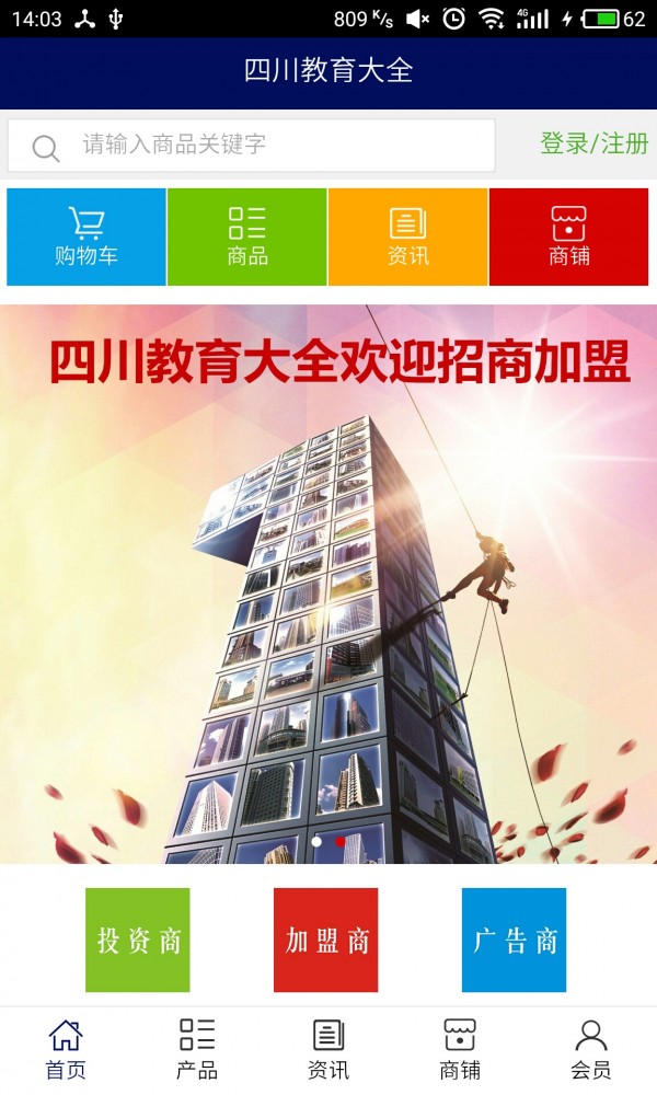 四川教育大全网是汇集信息、资讯、企业动态、销售、招商加盟为一体的专业行业平台。该客户端不仅具备购物、查询订单、搜索商品、行业资讯和产品评价等常用功能,而且还实现了手机版特有的会员注册陆、广告位、招商开店等功能。目标是整合当地品牌商、生产商、经销商,为商家和消费者之间提供一站式解决方案。欢迎下载使用!