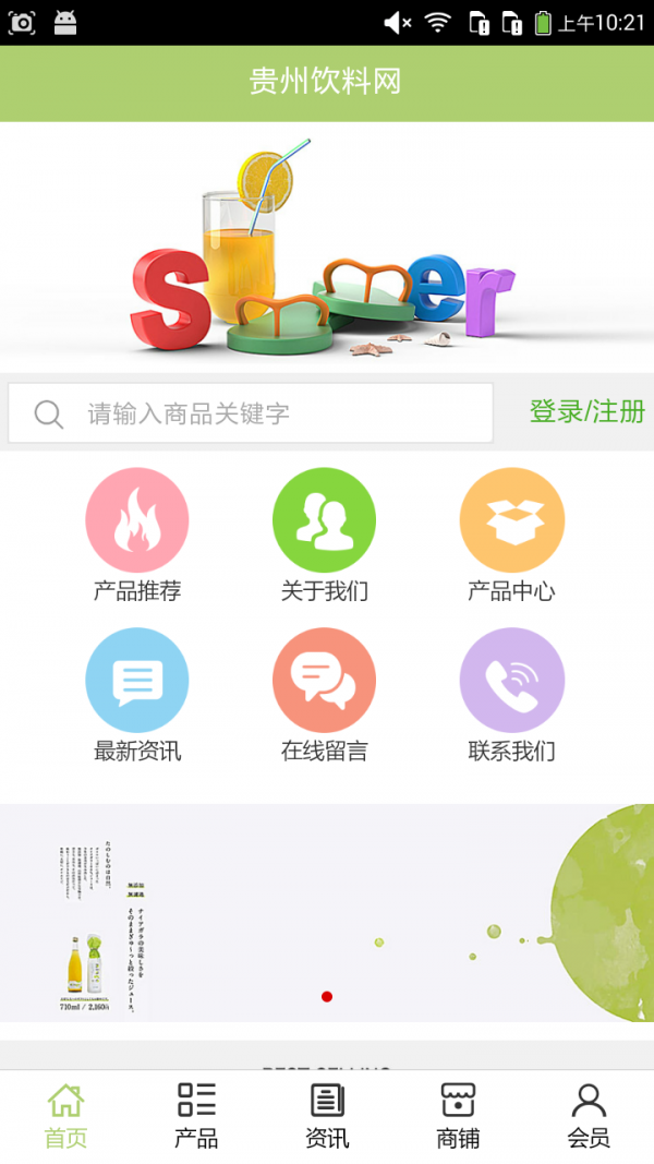 贵州饮料网app不仅具备购物、查询订单、搜索商品、行业资讯和 产品评价等常用功能,而且还实现了手机版特有的会员注册 登录、广告位、招商开店等功能。目标是整合当地品牌商、 生产商、经销商,为商家和消费者之间提供一站式解决案。