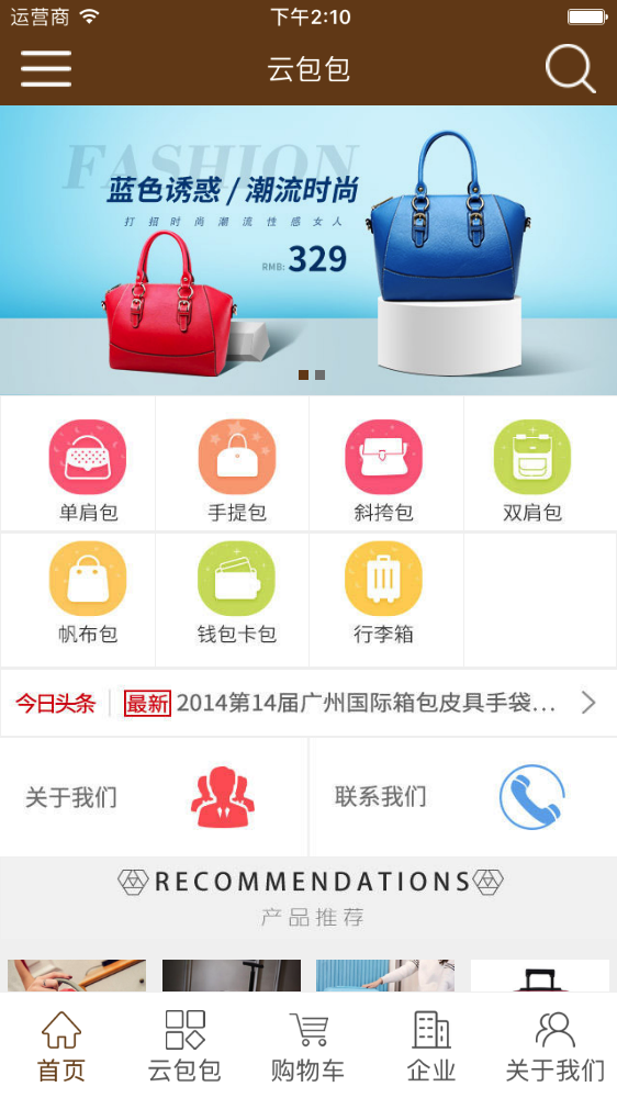 云包包一直致力于提供箱包相关资讯及箱包企业信息化服务。供您随时、随地、随身查找有关箱包行业相关信息,界面友好,简单方便,运行流畅,图文并茂,信息丰富。为您挑选各大顶级品牌的最新品、最爆款、特价打折的名牌包包商品,让您随时随地掌握最高端的时尚潮流前线,淘到最最满意的名牌包包,做最有品位的自己!