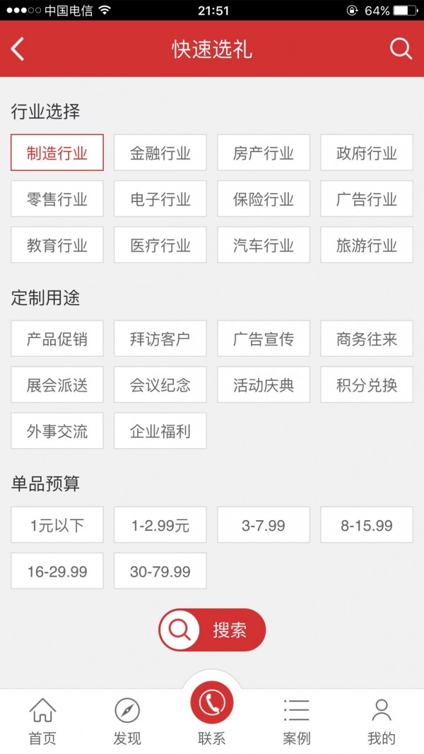 5秒内就可在我们几千款商品中,根据您企业的行业特性,礼品的用途和预算,给您最快速度的提供相应的商品推荐。