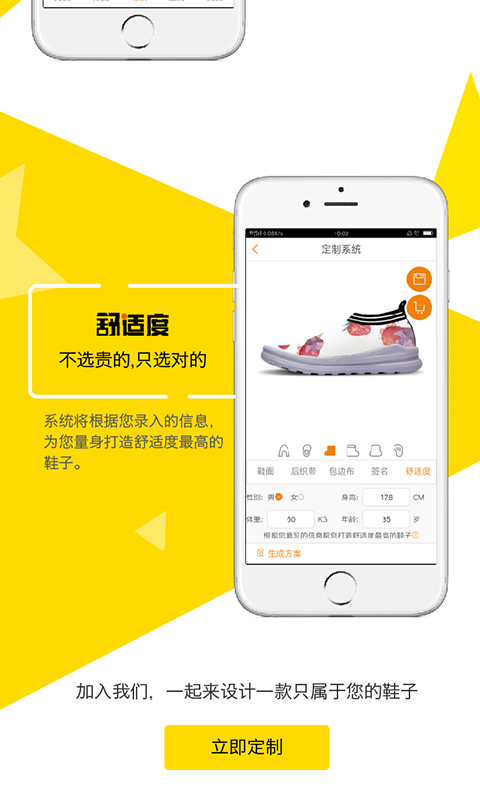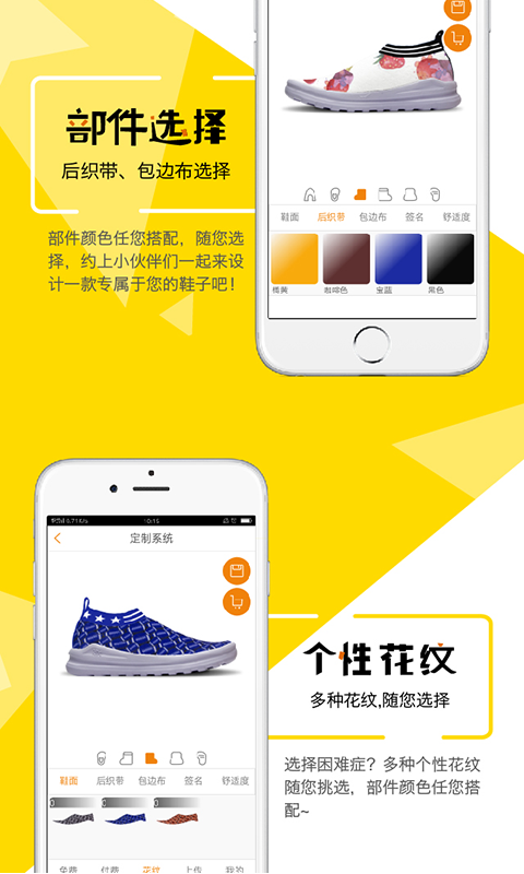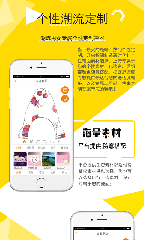 你的鞋子你做主,个性化的定制:上传你喜爱的图片,让它成为鞋子的一部分,不再让你的鞋子千篇一律,让你的鞋子成为你专属的标志!使你成为时尚设计师。