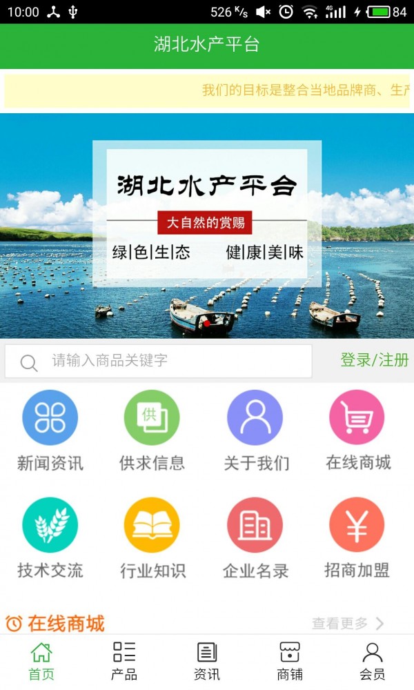 湖北水产平台是一款专业的APP客户端,随时为你提供行业资讯,在线商城,技术交流,行业百科,招商加盟等服务,该客户端现面向全国招商,各大企业可以在该客户端上发布供求信息,发布广告,发布行情,让各大企业及广大客户更为便捷。目标是整合当地品牌商、生产商、经销商,为商家和消费者之间提供一站式解决案。