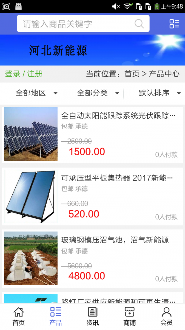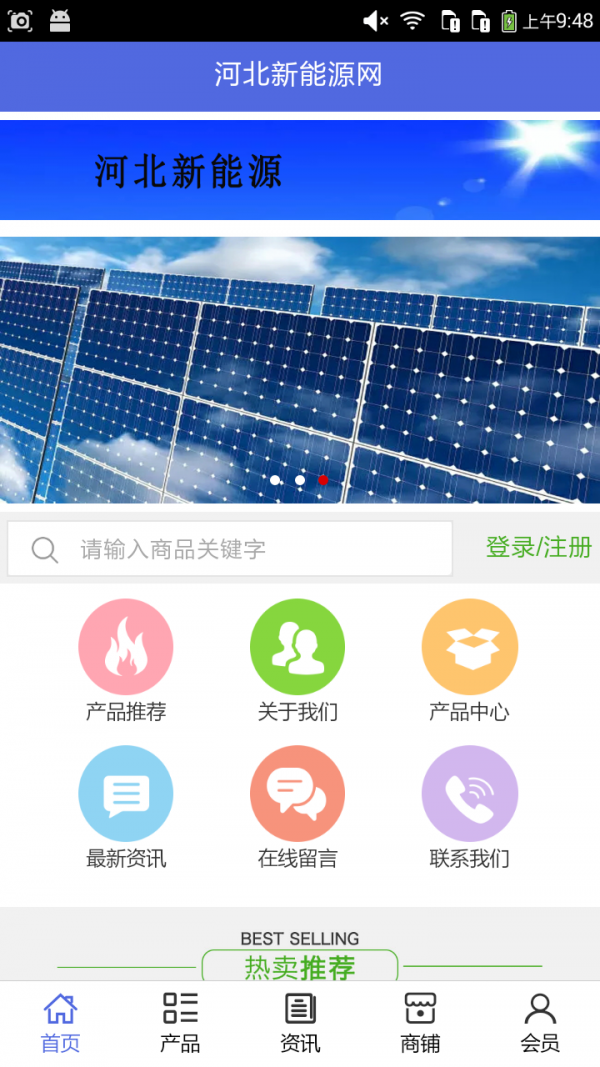河北新能源网app不仅具备购物、查询订单、搜索商品、行业资讯和产品评价等常用功能,而且还实现了手机版特有的会员注册登录、广告位、招商开店等功能。目标是整合当地品牌商、生产商、经销商,为商家和消费者之间提供一站式解决案。
