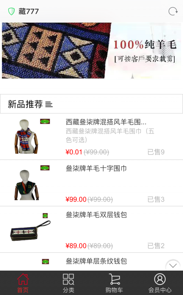藏777app是一款网络购物应用,藏777app为用户提供一个便捷的在线购物商城,方便用户在这里轻松选购西藏地区的特色产品,为用户购物带来便利。