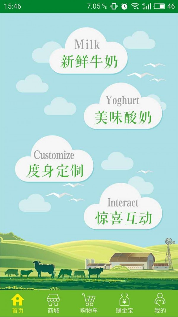 一款让你足不出户,天天和家人,朋友享受新鲜牛奶,新鲜酸奶的app。在这里你可以进行在线浏览我们的产品,在线下单以及在线支付等方便快捷的服务。