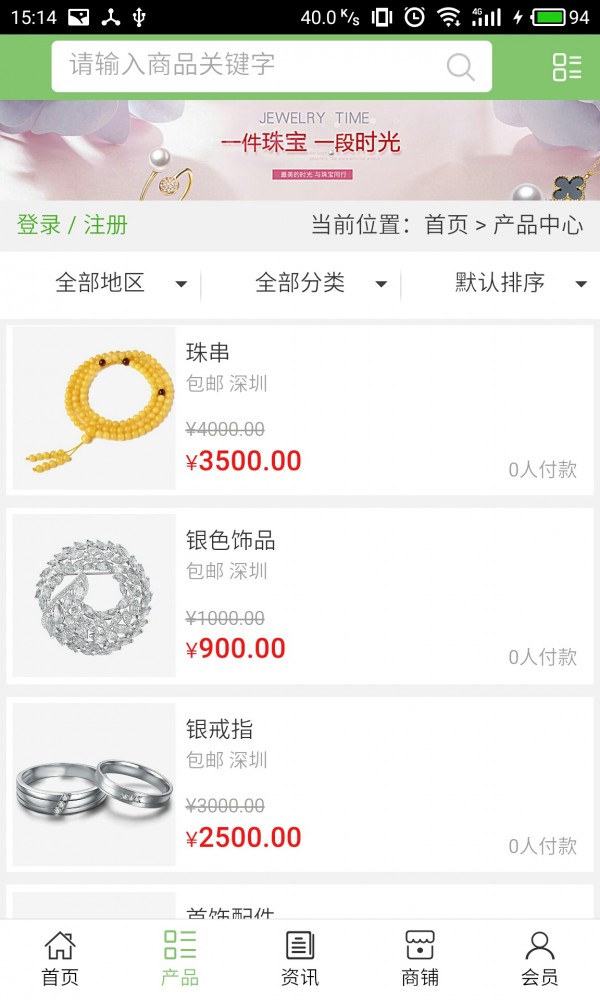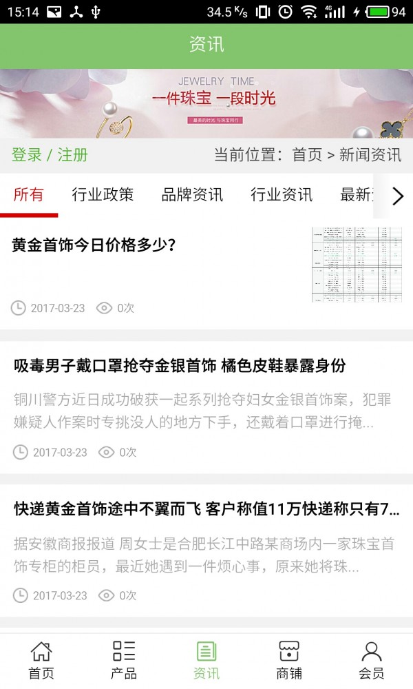 珠宝首饰门户网客户端不仅具备购物、查询订单、搜索商品、行业资讯和产品评价等常用功能,而且还实现了手机版特有的会员注册陆、广告位、招商开店等功能。