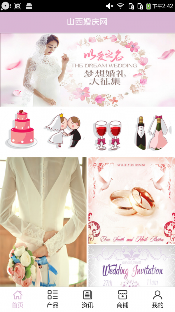 山西婚庆网app不仅具备购物、查询订单、搜索商品、行业资讯和产品评价等常用功能,而且还实现了手机版特有的会员注册登录、广告位、招商开店等功能。目标是整合当地品牌商、生产商、经销商,为商家和消费者之间提供一站式解决案。