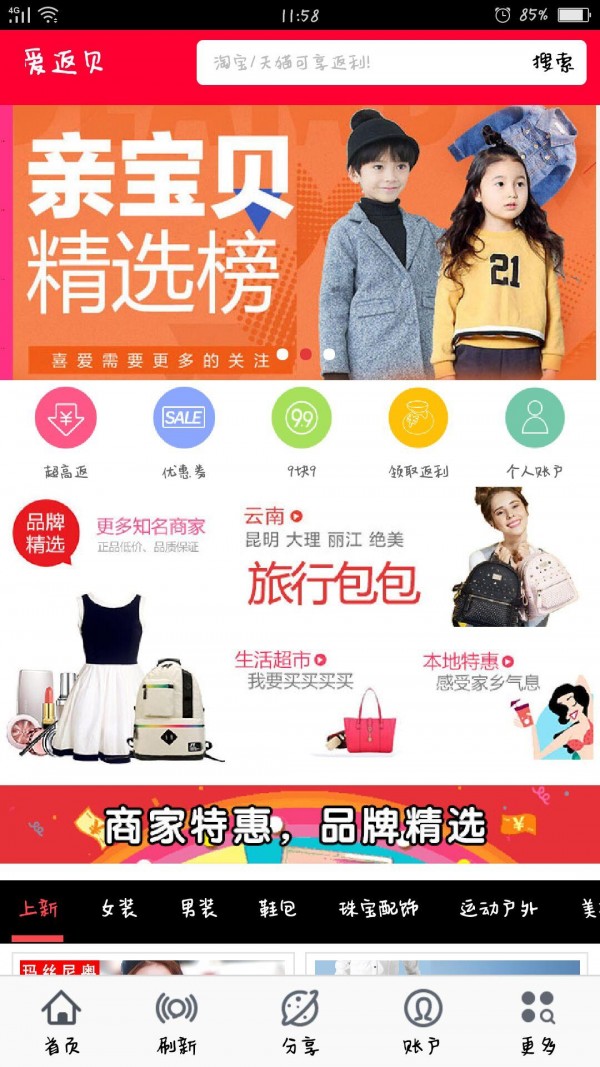 爱返贝app是一款网络购物应用,是个精选天猫、京东、苏宁易购和唯品会等优质产品的移动平台。爱返贝app旨在让大家尽享实惠购物服务。