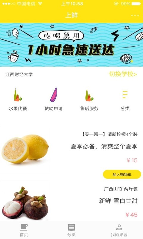 【极致】 最新鲜的水果,最健康的理念,最贴心的服务。 送货速度:半小时送达宿舍。 售后服务:水果有任何问题可以无实物退换货。