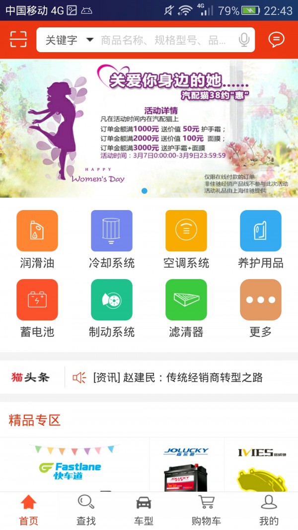 佳配猫app是一款电商购物类应用,专注汽车后市场,为用户提供一站式购物服务,轻轻松松购买自己需要的汽车配件。