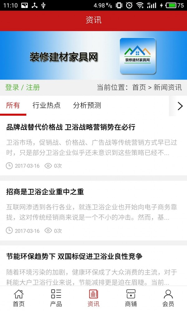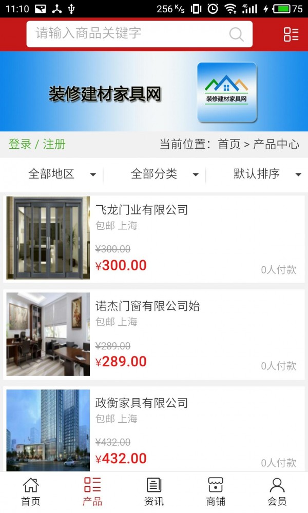 装修建材家具网客户端不仅具备购物、查询订单、搜索商品、行业资讯和产品评价等常用功能,而且还实现了手机版特有的会员注册陆、广告位、招商开店等功能。