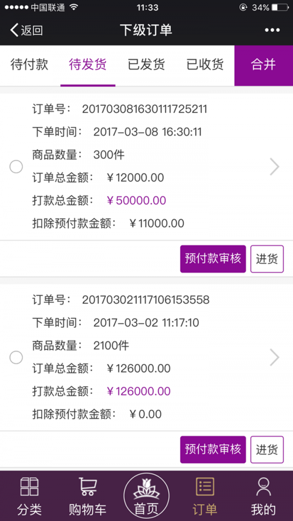 2、实现了袋里按级别在线下单订货,在线扫码发货收货,合并下级订单直接向上级订货、下级订单拆分发货。